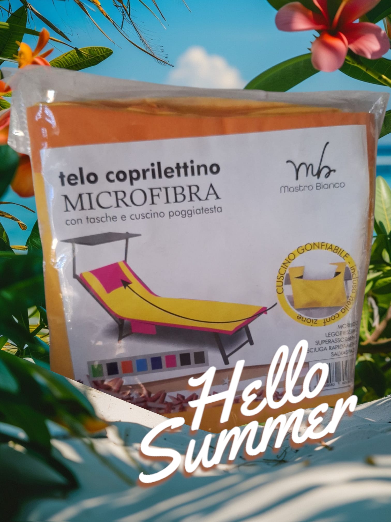 Telo coprilettino in Microfibra con Tasche e Cuscino Poggiatesta gonfiabile colore Arancione